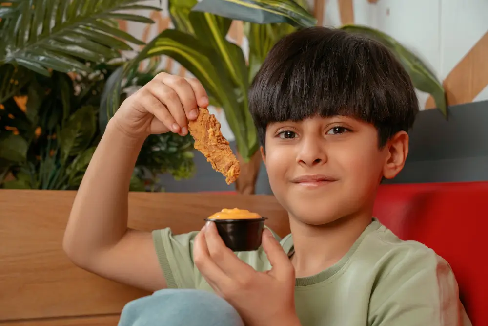 وجبة ناجتس الدجاج مقرمشة ومتبلة، مثالية كوجبة خفيفة أو لإضافة بروتين للوجبة الرئيسية. تُقدم مع صوص اختيارك.