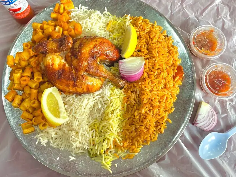 مطعم شعبي يقدم وجبات سعودية سريعة بأسلوب تقليدي وأطباق متنوعة.