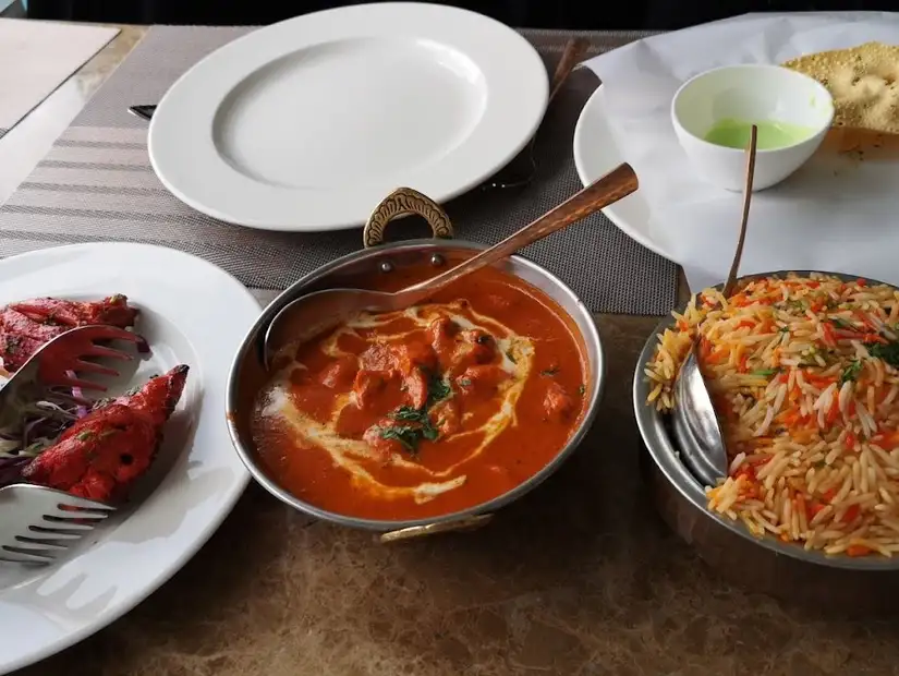 - المنيو: برياني، تكا ماسالا، خبز نان، أطباق لحم ودجاج هندية، مشروبات خاصة