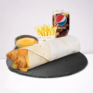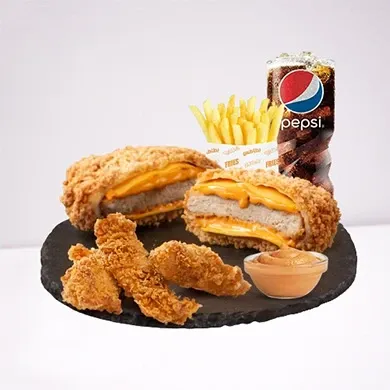 المكونات: برجر كرسبي مع 3 قطع تندرز مقرمشة، صوص، بطاطس، ومشروب.