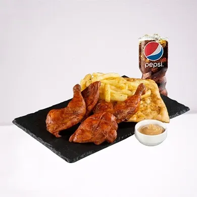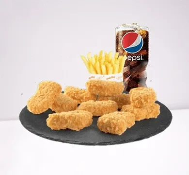 المكونات: دجاج مقلي، بطاطس، مشروب.