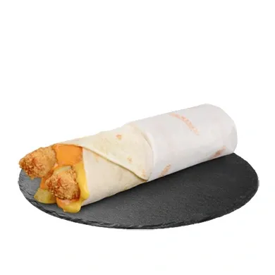 المكونات: قطع التندرز المقرمشة، خس، بطاطس، صوص التكا الحار، عيش التورتيلا.