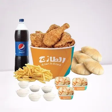 الطازج: سطل العائلة، عروض الجمعة، وجبات 8–12 شخص، مع صوصات وبطاطس وسلطة