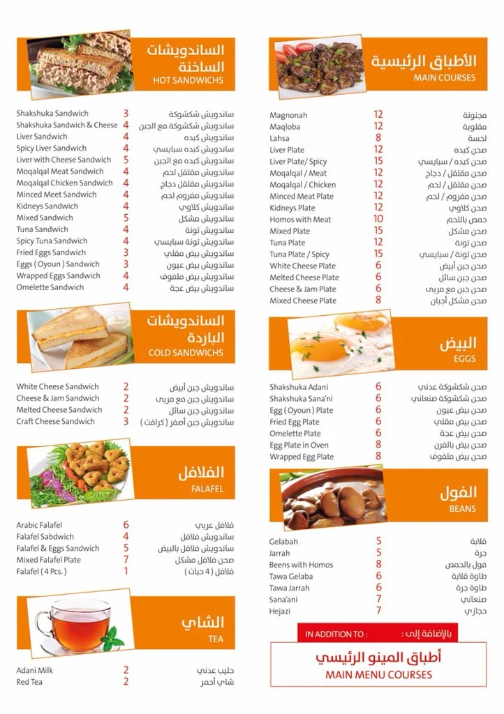 | فرع الزهراء | شارع صاري | يشمل المنيو الكامل |