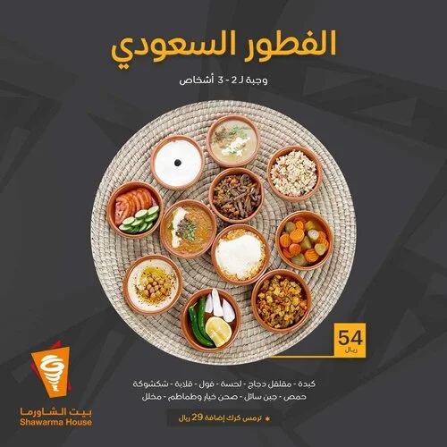 - خلال الاحتفالات والمناسبات مثل اليوم الوطني السعودي، يطلق بيت الشاورما عروضًا خاصة تشمل خصومات على الوجبات الفردية والعائلية لتشجيع الزبائن على الطلب بأسعار أقل.